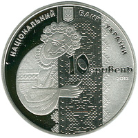 | На аверсі монети розміщено: угорі малий Державний Герб України, напис півколом НАЦІОНАЛЬНИЙ БАНК УКРАЇНИ, зображення дівчини з голкою в руках, яка вишиває полотно, на тлі полотна номінал: 10 гривень, під яким праворуч - рік карбування монети 2013. |