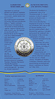 На аверсі монети на дзеркальному тлі розміщено: малий Державний Герб України (у центрі), навколо якого зображено стилізовану символічну композицію єднання людей доброї волі в усьому світі – попарно з’єднані руки, замкнуті в коло та оповиті синьо-жовтою стрічкою (використано тамподрук); написи: УКРАЇНА (угорі півколом), рік карбування монет – 2022 (ліворуч), унизу півколом зазначено номінал – 5 ГРИВЕНЬ; праворуч логотип Банкнотно-монетного двору Національного банку України.