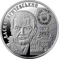 На реверсі монети розміщено: на дзеркальному тлі портрет Василя Кричевського, праворуч від якого – композицію, що представляє його спадок: угорі герб УНР, під яким перший зразок нового українського архітектурного стилю – головний фасад будинку Полтавського губернського земства (1903–1908), побудованого за проєктом Кричевського, написи: ВАСИЛЬ КРИЧЕВСЬКИЙ (ліворуч від портрета півколом на дзеркальному тлі), роки життя – 1873/1952 (праворуч від портрета на матовому тлі). |