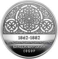 Пам`ятна монета присвячена одній з архітектурних перлин Києва – Володимирському собору. Побудований у неовізантійському стилі він привертає увагу як своєю історією, так і внутрішнім розписом – справжнім шедевром мистецтва.