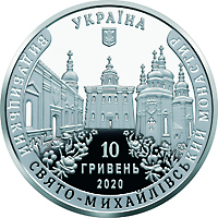 | На аверсі монети розміщено: угорі – малий Державний Герб України, над яким напис півколом УКРАЇНА; у центрі на дзеркальному тлі зображено знакові будівлі архітектурного комплексу Видубицького монастиря в оточенні квітів; зазначено написи: 10/ГРИВЕНЬ/2020, ВИДУБИЦЬКИЙ СВЯТО-МИХАЙЛІВСЬКИЙ МОНАСТИР (півколом). |