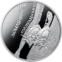 На реверсі монети розміщено стилізовану композицію з висоти пташиного польоту: на тлі стилізованого рослинного орнаменту зображено орача, який править парою волів, запряжених у плуг. Ліворуч на дзеркальному тлі вертикальний напис: ЗЕМЛЯ/ГОДУВАЛЬНИЦЯ. |